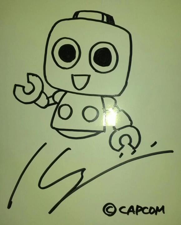 Inafune, the father of Mega Man, recently attended the Japan Expo 2012 in Paris to sign off autographs and take pictures with the local fans. Among them was Ancode, who flew all the way from Spain to meet the legendary game developer in person. Knowing that this will be his first time meeting him, Ancode had to present a gift–one that I am sure many Mega Man Legends fans will appreciate.